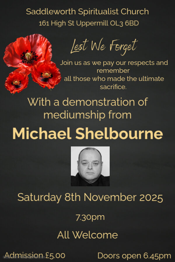 Our services are held every Saturday. Doors open 6.45pm service starts at 7.30pm-9pm our short Divine service(free) is now Tuesday at 7.00pm (no medium) followed by an Awareness and Development class £5.00 for both