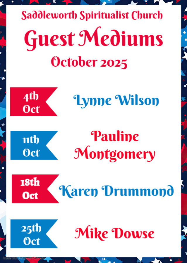 Our services are held every Saturday. Doors open 6.45pm service starts at 7.30pm-9pm our short Divine service(free) is now Tuesday at 7.00pm (no medium) followed by an Awareness and Development class £5.00 for both